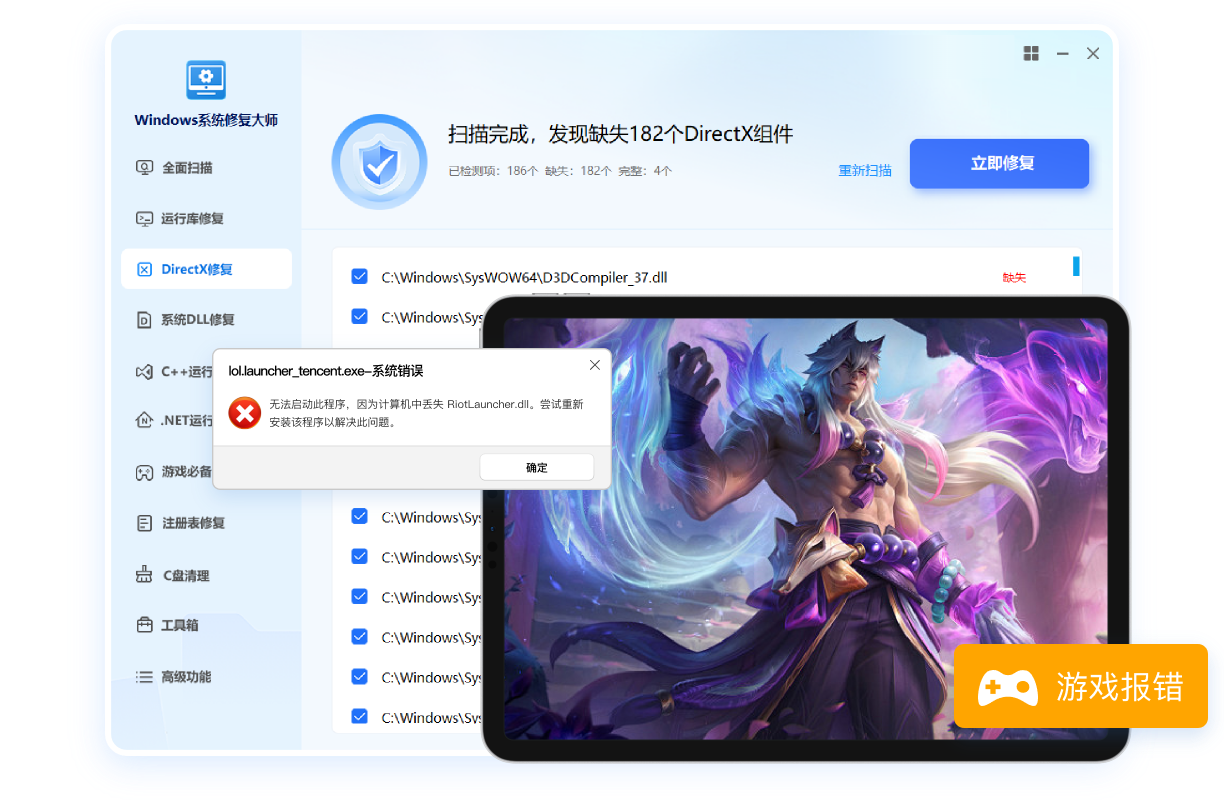 智能修复系统和游戏异常远离各种报错超全系统文件库,智能修复,灵活下载DII文件丢失,各类运行库异常,全能修复