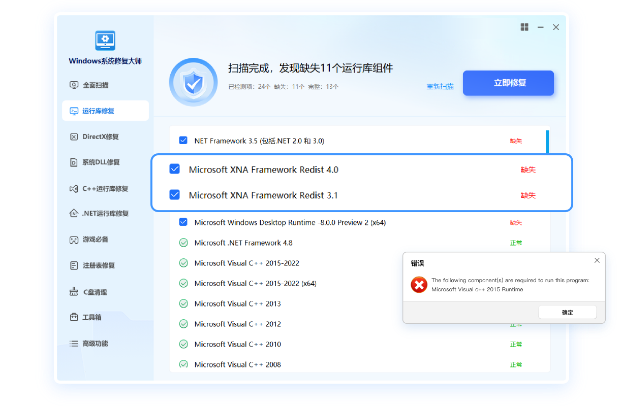 C++/NET运行库异常一键解决告别运行库缺失导致的系统异常问题缺失文件整理齐全,一站式解决系统异常 -